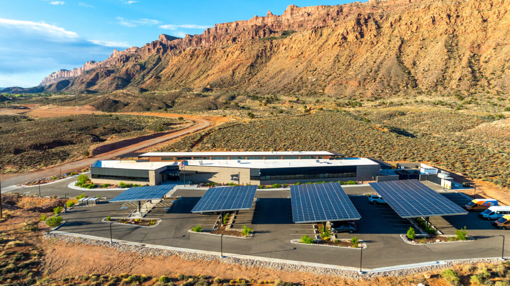 From the project’s inception, the Utah State University Moab Academic Building aspired to set an example of sustainable development in the region. It was critical to assemble a team that not only understood the values of the University but was also able to deliver on holistic performance with a constrained budget on a sensitive and challenging site. Salt Lake City-based MHTN Architects, with deep ties to USU over its 100-year life, partnered with sustainable visionaries, Lake | Flato, sustainably minded engineers at Colvin Engineering and Spectrum Engineers, and legacy Utah contractors, Hogan Construction, and began brainstorming possibilities.